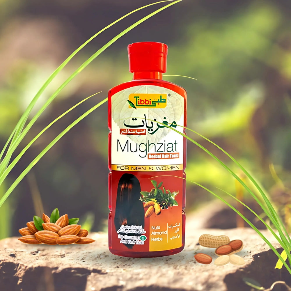 Transform your hair with the power of nature. Mughziat Hair Tonic – because strong, healthy hair starts with deep nourishment